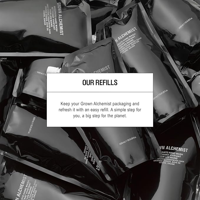 - Sustainable Everyday Care: Vegan and cruelty free formula designed for effective care; refill any Grown Alchemist hand soap bottle to reduce waste while bringing elegance to any bathroom or kitchen sink.