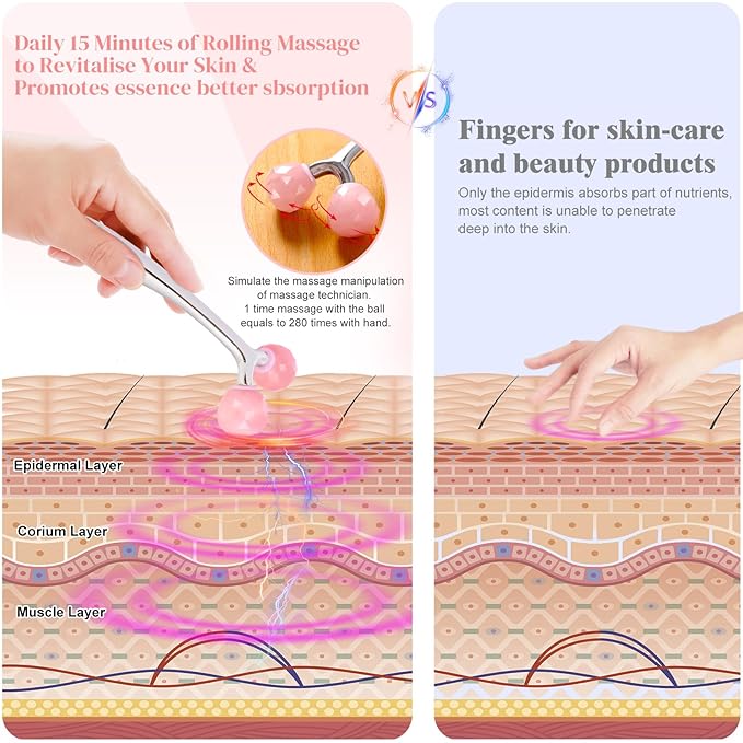 - Dual-Action Design: The diamond-shaped head targets pressure points (jawline, cheekbones, under-eyes) for deeper sculpting, while the smooth rounded side glides for full-face relaxation.