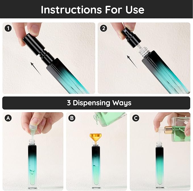 - Easy to Refill: Comes with 1*FUNNEL+1*DROPPER+1*PUMP, you can easily dispense liquid into the mini perfume atomizer