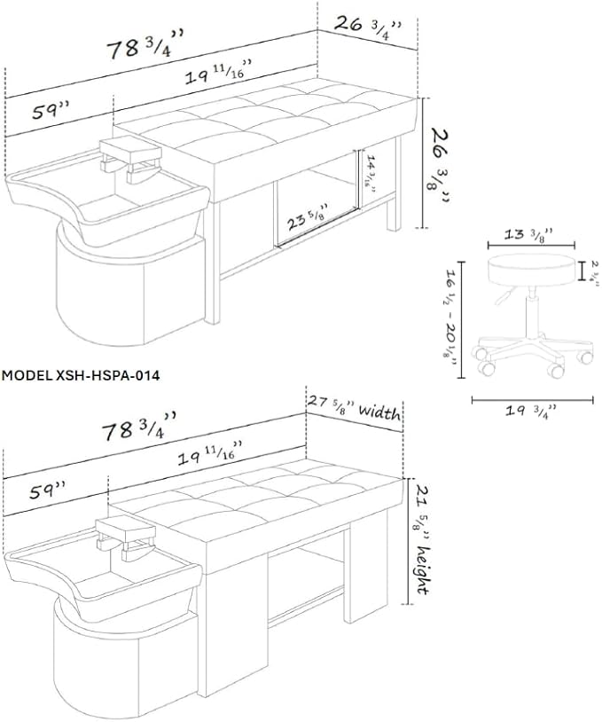 - DIMENSIONS: Massage Bed with Shampoo Bowl Dimension: 78" (Length) x 26.5" (Width) x 26.5" (Height)