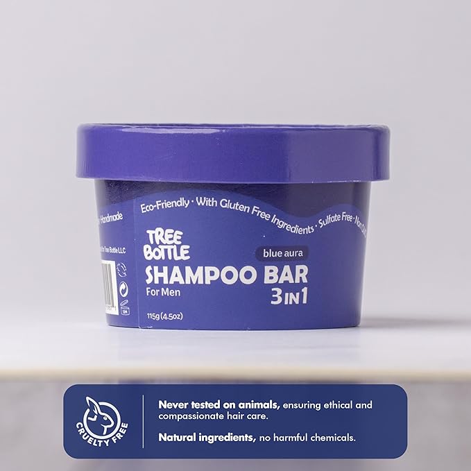 Tree Bottle Argan Oil + Bamboo Extract 3-in-1 Shampoo Bar for Men - For Hair, Beard & Body - Deep Clean, Nourishing & Frizz Control - Natural, Paraben & Sulfate-Free - Made in USA - 4.5oz