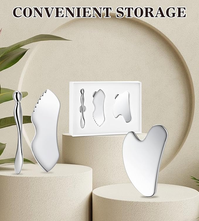 - Combat Wrinkles and Fine Lines: The gua sha stainless steel tool works wonders in reducing wrinkles, allowing you to achieve a smoother and more youthful complexion with regular use.