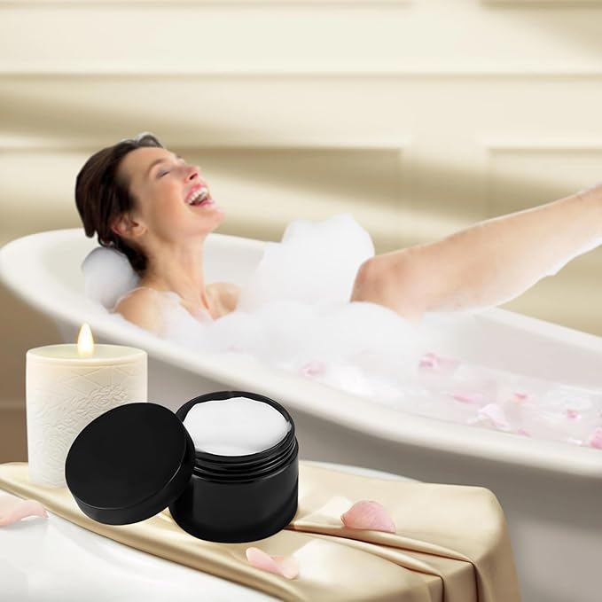 - [MULTIPURPOSE]:This black plastic round storage jar can not only be used for storing creams, lotions, bath salts, sugar scrubs, fondants, lip scrubs, cosmetics and other items, but it is also suitable for storing dry food, nuts, spices, flour, cute candies, or other handmade products, all of them are a very good choice, but it is not recommended to place the objects of higher temperature, you can wait for them to be cooled before storing them.