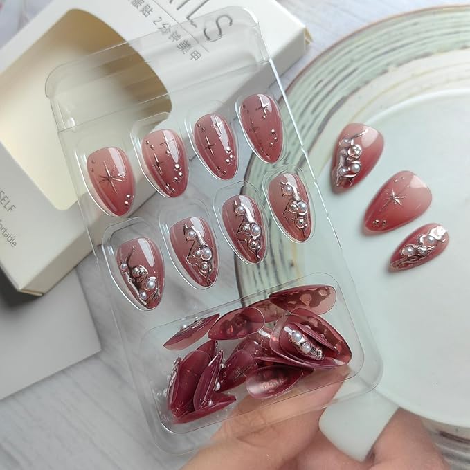- Material:These red acrylic press on nails with 3d pearl charms design are made of ABS material, no irritating smell, higher gloss, not easy to break, and will not harm the human body or nails, and can be used with confidence