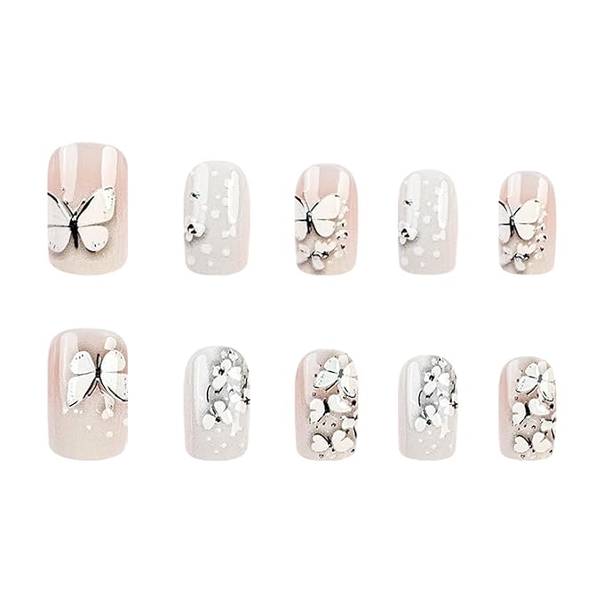 - Fashion for Spring Butterfly Nails Manicure:Elegant press on nails short square contains 12 sizes, total 24 pcs of short square nails
