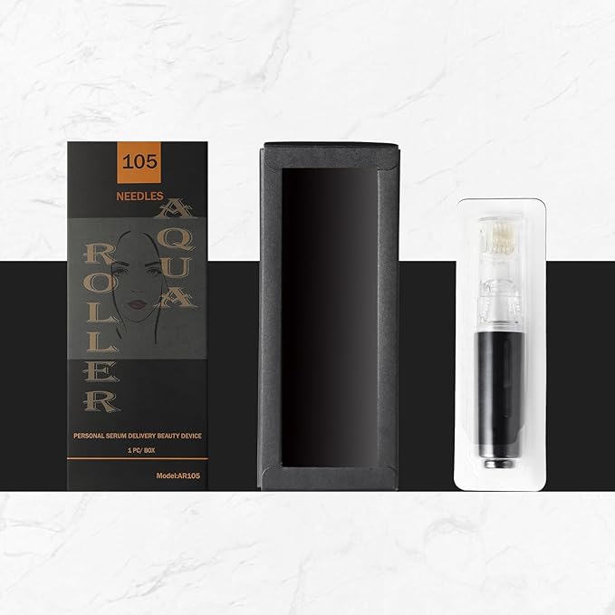 Derma Roller with Liquid Reservoir Serum Applicator for Lips, Skin, Hair, Wrinkles, Beard, Easy to Use Face Roller Skin Care Tools Without Serum, 105 Titanium Needles 0.25 mm