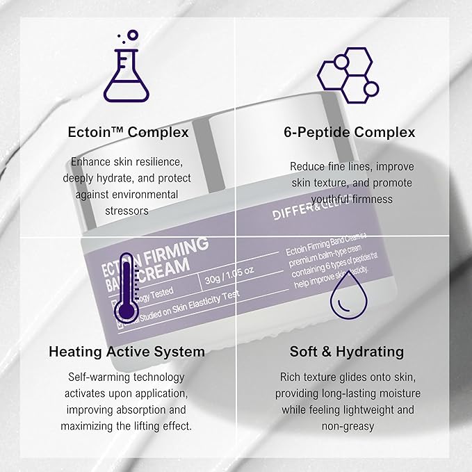 Differ & Deeper Ectoin Firming Band Cream – Wrinkle Care & Lifting Cream with Ectoin Complex, 6 Peptides & Heating System for Hydration, Elasticity & Firm Skin – Korean Skincare