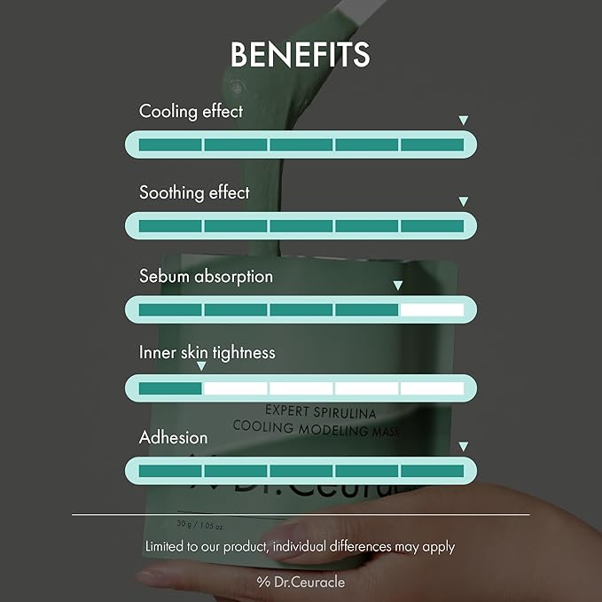 leegeehaam Dr.Ceuracle Expert Spirulina Cooling Modeling Mask - Jelly Face Mask for Glass Glow Skin, DIY Home Spa, Korean Skincare for Stocking Stuffers (30g / 1.05 oz.)