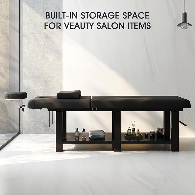 - [Sufficient Storage Space] -- Built-in storage space under this massage table is perfect for storing towels and a wide range of therapeutic supplies, and with its extensive storage options, you can easily get everything you need during treatment, keeping your professional workspace organized and efficient and ensuring you are fully prepared for the best-in-class service to your customers.