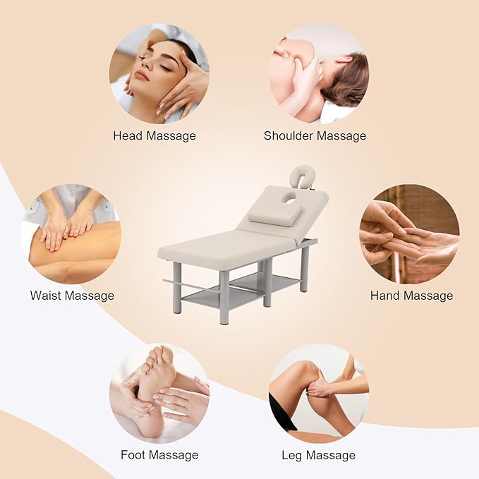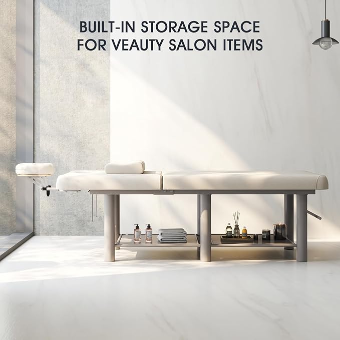 - [Sufficient Storage Space] -- Built-in storage space under this massage table is perfect for storing towels and a wide range of therapeutic supplies, and with its extensive storage options, you can easily get everything you need during treatment, keeping your professional workspace organized and efficient and ensuring you are fully prepared for the best-in-class service to your customers.
