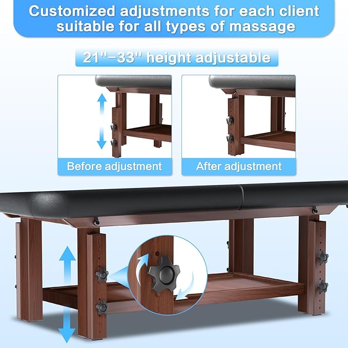 - PU Materials: Featuring black PU leather upholstery and a heavy - duty wood frame capable of withstanding up to 1500LBS of load, the massage table is both durable and stylish, ensuring long - term use.