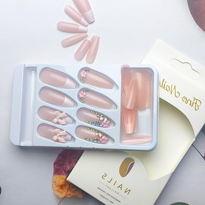 - Wide Application: The bow rhinestones stick on nails with design are suitable for all kinds of social occasions and Holidays. It very suitable for parties, dates, dinner parties, Halloween, Christmas, Valentines, prom, weddings. It must be your essential accessory. These nude glue on nails are also a beautiful present for your friends