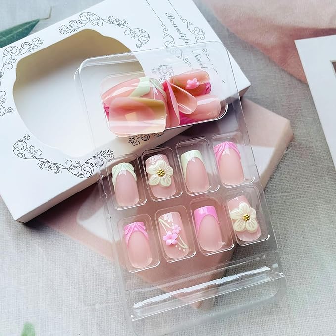 - Unique Classic Design: Square press on nails with a more exquisite flower design, are suitable for wearing in any occasion. In addition, our popular short square acrylic nails ensures a natural fit with your nails tips, providing comfortable use and a more natural effect