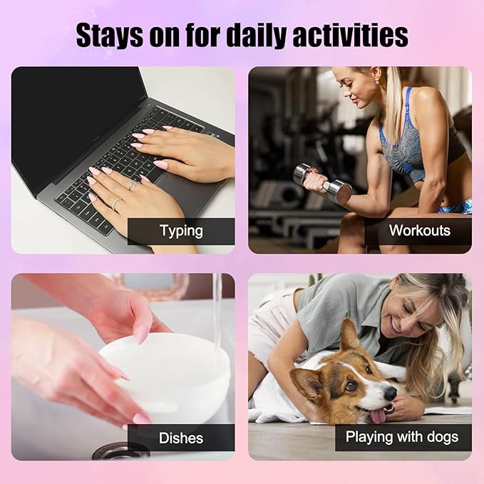 - Work, Date, Gym – Stays On Anywhere: Suitable for daily activities such as washing dishes, typing, dating, running marathons, or working out at the gym. Strong hold for busy lifestyles – no midday fixes. Your nails keep up with YOU.