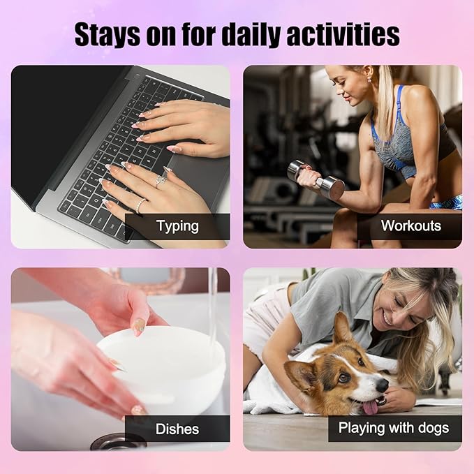 - Work, Date, Gym – Stays On Anywhere: Suitable for daily activities such as washing dishes, typing, dating, running marathons, or working out at the gym. Strong hold for busy lifestyles – no midday fixes. Your nails keep up with YOU.