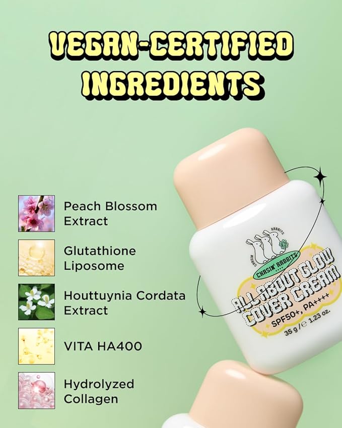 CHASIN' RABBITS All About Glow Cover Cream 1.23 Oz, Lightweight, Hydrating, Long-Lasting Radiance for a Flawless Glow, Smooth Skin Texture, Vegan, Korean Makeup