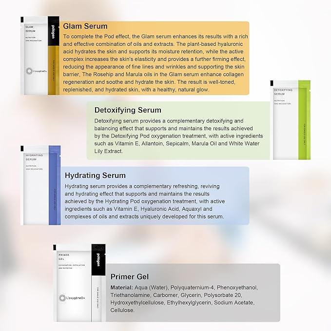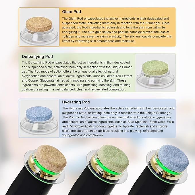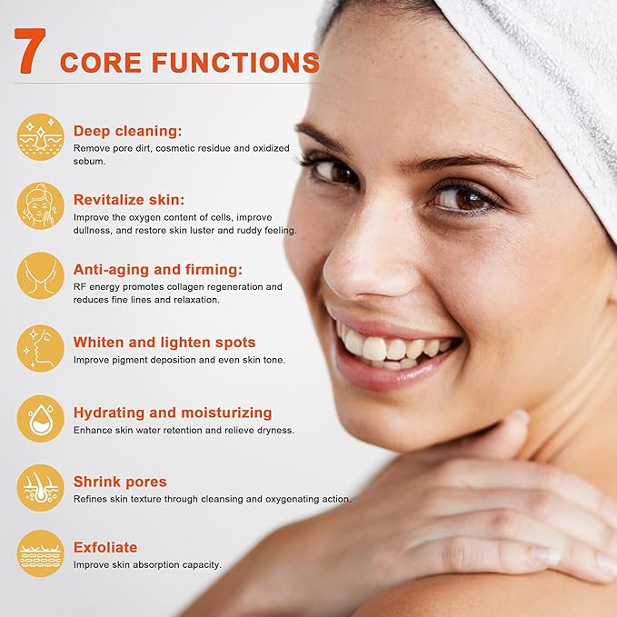 - CO₂ Oxygenating Bubble Technology: Generates nano-sized CO₂ bubbles via a chemical reaction (bicarbonate + citric acid in disposable works heads + gel). Mimics the "Bohr Effect" to boost oxygen release into skin cells, improving tissue oxygenation by ~20% per session. This process is designed to support nutrient absorption and promote a revitalized complexion
