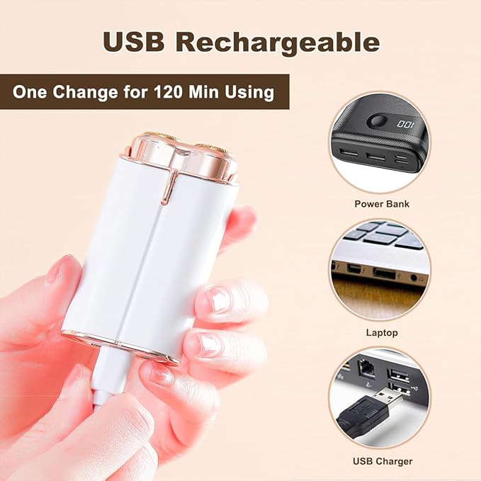 - 【USB Recharging】:The facial hair remover uses USB-C charging and can be charged via a mobile power supply, wall charger, car charger or other USB charging device, saving you the trouble of replacing the battery and facilitating your life.