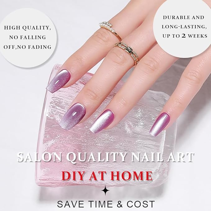 - 【Cat Eye Design】Each nail has a reflective, deep shimmering effect that changes as light hits it, giving a stunning multidimensional look that stands out without being overly flashy. It's a sophisticated style that blends boldness and elegance effortlessly