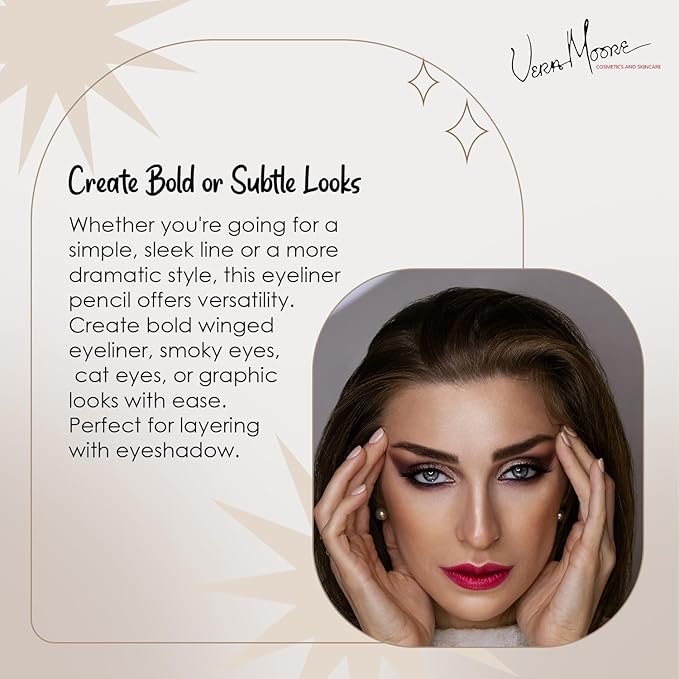 Vera Moore Slim Eye Liner Pencil, Smooth Formula, Hypoallergenic and Vegan, Smudge-Proof and Waterproof Application, Bold and Defined Lines Eyeliner, (0.05 Oz) (Glitz (Gold))