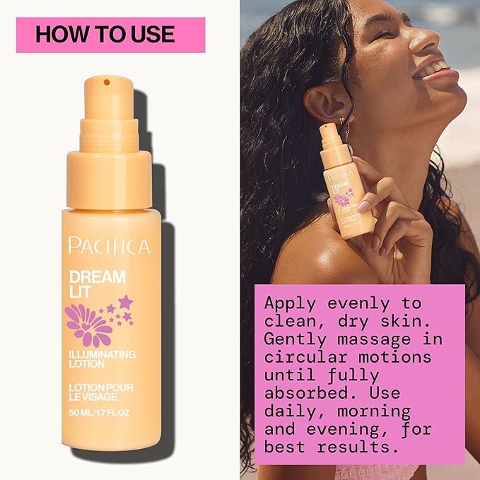 - DREAMLIT ILLUMINATING LOTION: The final step for instant radiance! Dreamlit is a silky, antioxidant-rich lotion that doubles as a lightweight moisturizer and glow-enhancing primer. Infused with hyaluronic acid, vitamin C, and natural extracts like peach and squalane, it blurs the look of pores and fine lines while imparting an ethereal glow. Wear it alone for a fresh-faced sheen or under makeup for a lit-from-within luminosity.