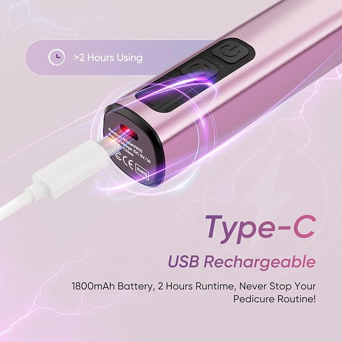 - ๐ใ๐๐จ๐ซ๐๐ฅ๐๐ฌ๐ฌ & ๐๐๐๐ก๐๐ซ๐ ๐๐๐๐ฅ๐ ๐๐๐ฌ๐ข๐ ๐งใUnlike traditional corded electric foot callus remover, our foot scrubber dead skin remover is completely wireless design, it offers convenience for mobility, eliminating the hassle of cords. The heel file for cracked heels electric powered by a rechargeable 1800mAh battery that supports up to 2.5 hours use, with Type-C USB charging port, more convenient and faster to charge. High-quality gear motor, stronger power and longer life.
