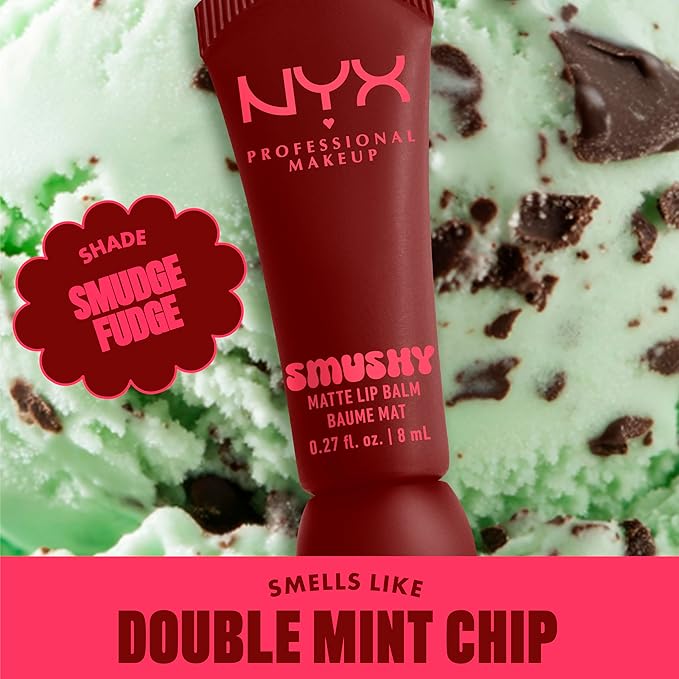 NYX PROFESSIONAL MAKEUP Smushy Matte Lip Balm, Tinted Lip Moisturizer with Soft, Matte Finish - Smudge Fudge (Chocolate Brown)
