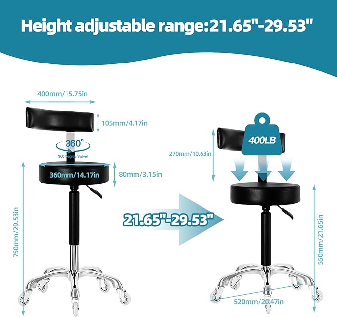 - Sturdy Durable——Weight Capacity is 400 lb.The base(20.47'')is thick and strong, the casters are high quality and durable.