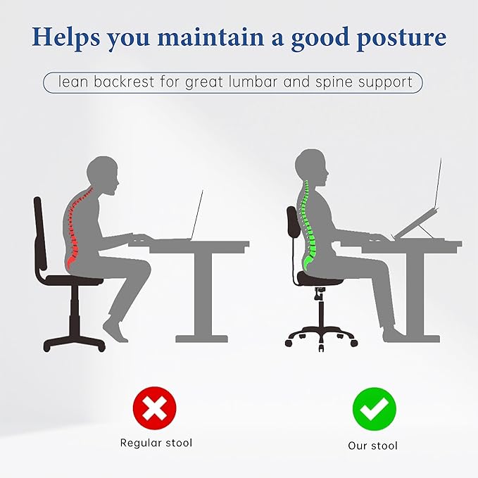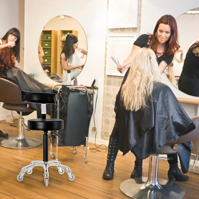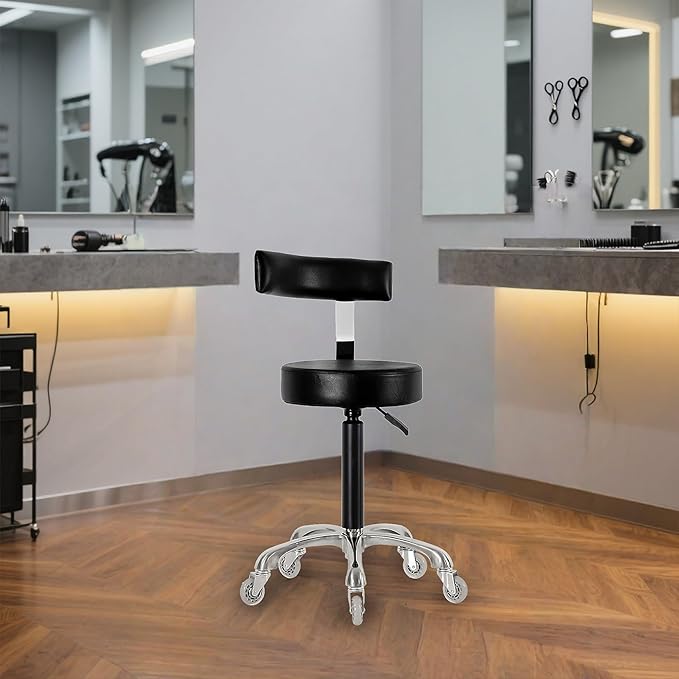 Swivel Rolling Stool Round Chair,Thick Sturdy Padding,Adjustable Stool with Wheels for Doctor,Medical,Massage Salon,Office,Shop(Black,with Back)