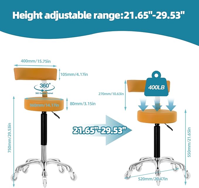 - Sturdy Durable——Weight Capacity is 400 lb.The base(20.47'')is thick and strong, the casters are high quality and durable.