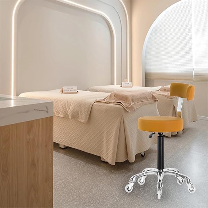 Swivel Rolling Stool Round Chair,Thick Sturdy Padding,Adjustable Stool with Wheels for Doctor,Medical,Massage Salon,Office,Shop(Camel) (Black,with Back)