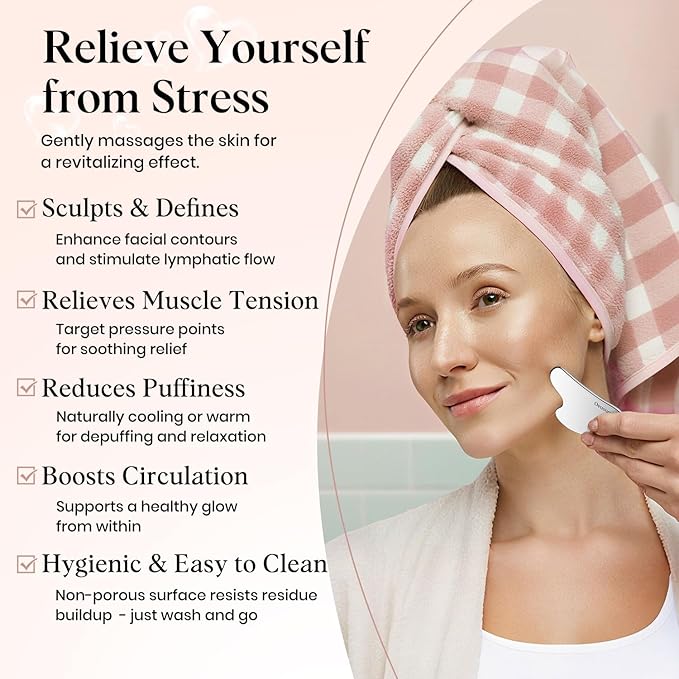 - Ultimate Hygienic & Easy to Clean: Our stainless steel gua sha tool is 100% Non-Porous Surface, prevents oils, or product residue buildup, safe for sensitive skin and effortless to clean, making it a more hygienic skin care tools option. Simply wash with soap and water to keep it pristine and ready for your skincare routine.