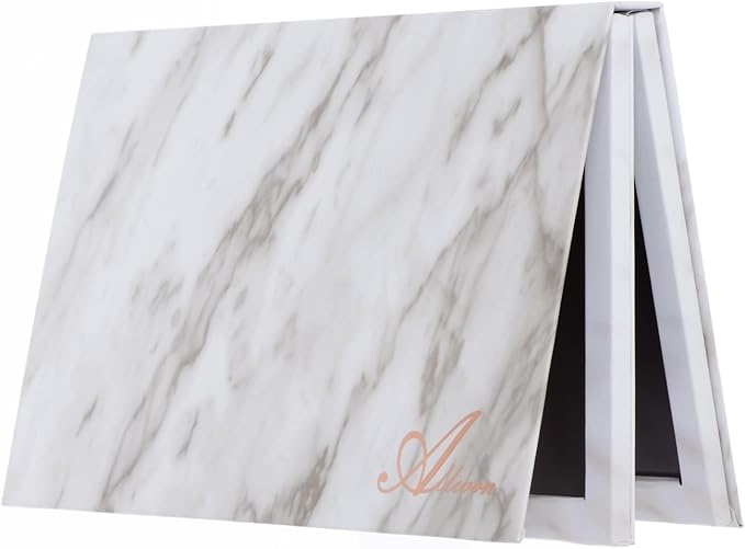 Allwon 2-Layer Book Shaped Marble Magnetic Palette Large Empty Makeup Palette Storage Box for Eyeshadow Lipstick Blush Powder (White)