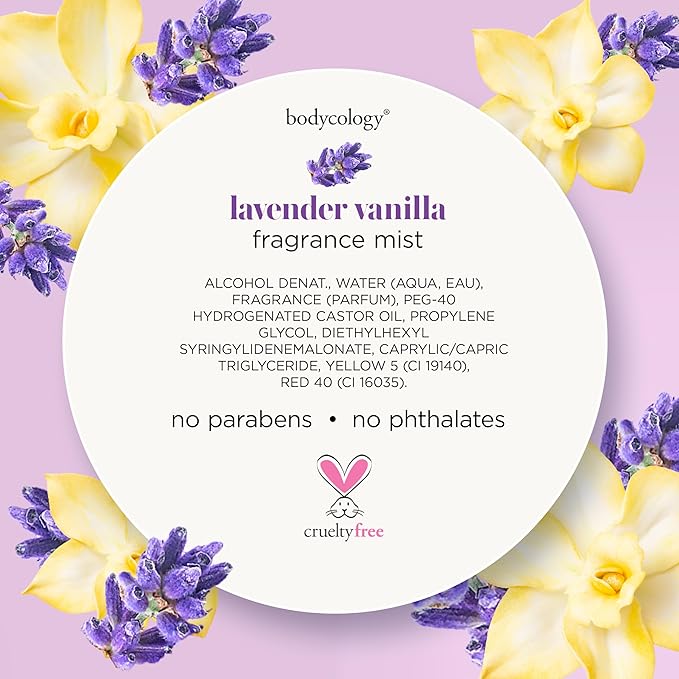 - SOOTHING ESCAPE: Bodycology Lavender Vanilla Fragrance Body Mist wraps you in delicate florals & vanilla