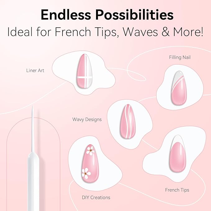 - [Perfect Gift Choice] This elegant white liner gel polish is an ideal gift. The classic white complements all skin tones, perfect for Halloween, Valentine's Day, parties, and weddings.