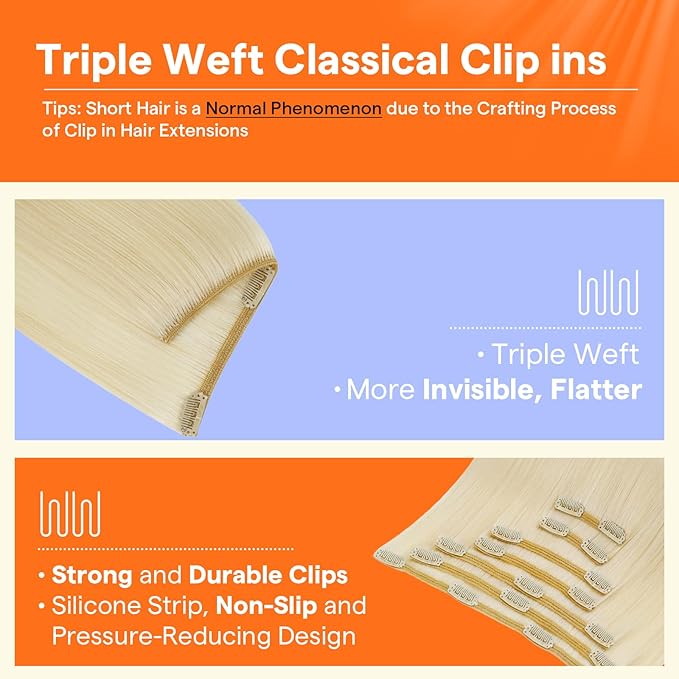 - Secure and Comfortable Wear with Upgraded Weft Design: Featuring a newly upgraded three layer weft design, Full Shine human hair clip in extensions offer enhanced durability and a secure fit. The lightweight, breathable construction ensures comfort throughout the day, even during extended wear