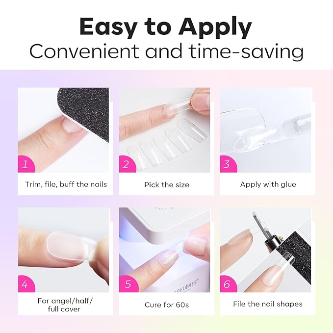- Multiple Application: Modelones nails tips can be used for gel nail polish, liner gel art, press on nails, acrylic nails, dip powder nails, poly nail extension gel, great for nails salon, DIY at home nails art. Wonderful for every and any event