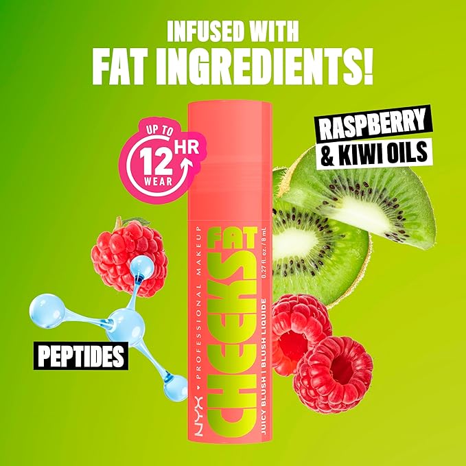 - Dewy Liquid Blush For Cheeks: Get a FAT juicy makeup blush look in one swipe and take your cheeks from flat to FAT, with this buildable formula, blendable texture and juicy hydration. See up to 24HR hydration and up to 12HR wear in 8 shades