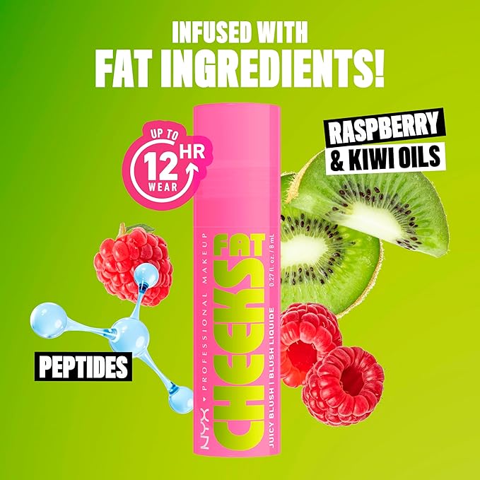- Dewy Liquid Blush For Cheeks: Get a FAT juicy makeup blush look in one swipe and take your cheeks from flat to FAT, with this buildable formula, blendable texture and juicy hydration. See up to 24HR hydration and up to 12HR wear in 8 shades