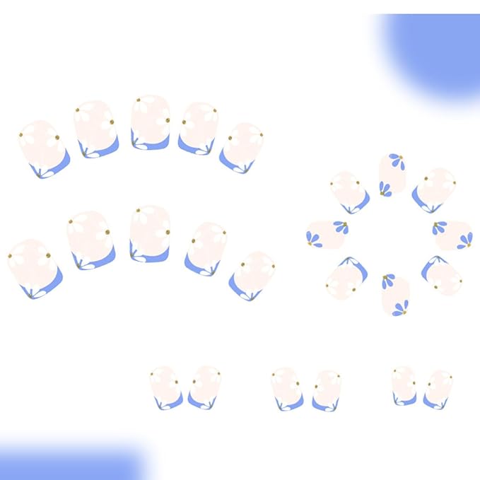 - Package Contains: 24 pcs of star fake nails, perfectly capturing the essence of summer with flower designs nails. Each set comes with an adhesive patch, a double - sided nail file, and a wooden stick