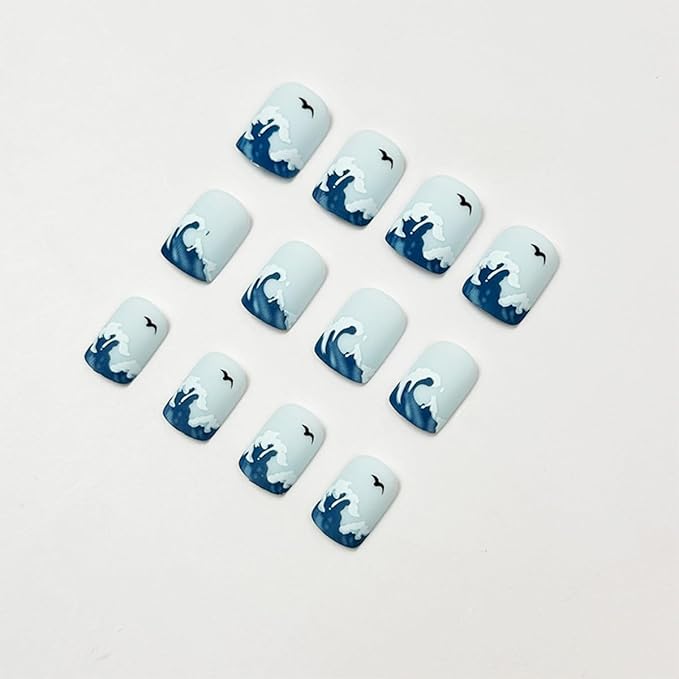 - Package Contains: 24 pcs of blue press on nails, perfectly capturing the essence of summer nails. Each set comes with an adhesive patch, a double - sided nail file, and a wooden stick