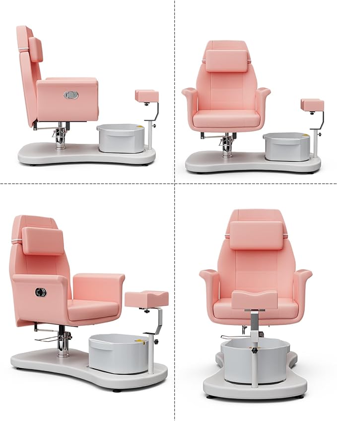 - Removable Vibration Massage Foot Basin: No plumbing needed! Our pedicure chairs come with a removable, vibration massage foot basin that offers 3 massage settings for maximum relaxation and foot cleaning. Made from high-temperature-resistant, odor-free PP material, this basin is built to last. Its 6.5” deep design and secure grooves ensure stability and ease of use for your clients