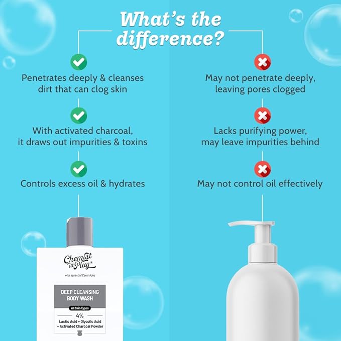 Chemist at Play Deep Cleansing Body Wash| Activated Charcoal Removes Dirt | Lactic Acid for Skin Texture| Glycolic Acid for Exfoliation| 7.9 Fl oz