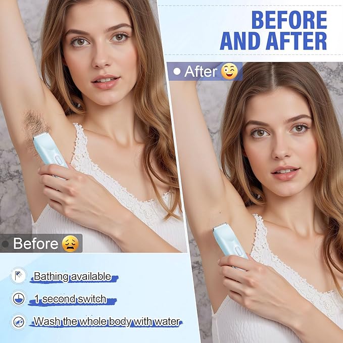 - 🧸Skin-friendly Ceramic Blades - Say goodbye to razor burns and bumps! The Women's Electric Bikini Shaver uses aviation-grade hypoallergenic ceramic blades to provide a smooth and gentle experience even on the most sensitive areas
