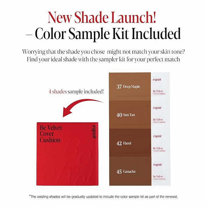 Espoir Be Velvet Cushion Foundation #45 Ganache | Quick and Easy Coverage with Long-lasting Color by Zero Oxidation, Velvety Smooth Finish & Lightweight Formula, Vegan, Korean Makeup, 0.46 oz