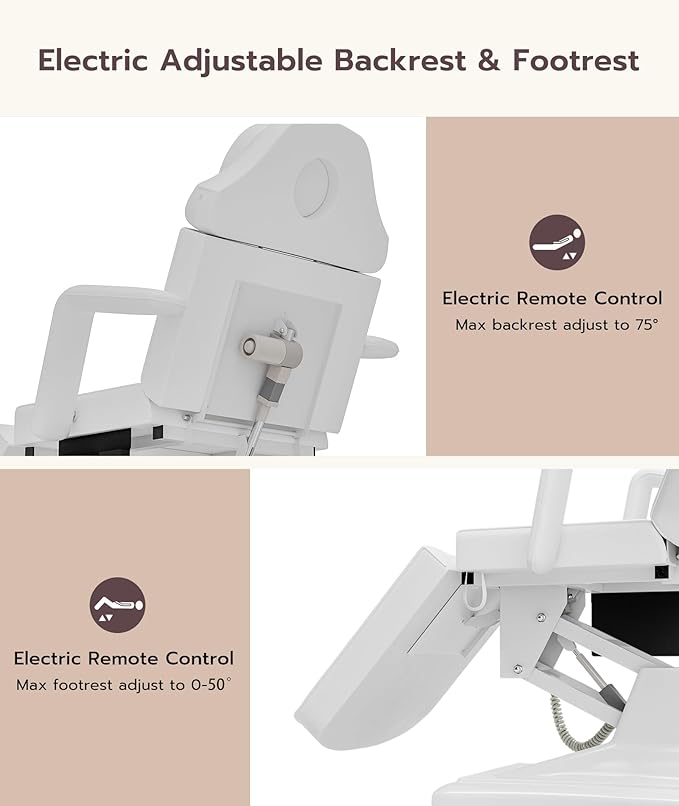 - Fully Electric Remote Control Convenience: Adjust the height, backrest, and leg cushion effortlessly with the included remote. Ditch manual cranks and weak motors. Three powerful motors ensure a smooth, quiet, and infinitely adjustable experience. Clients can shift positions at the push of a button—no getting up needed
