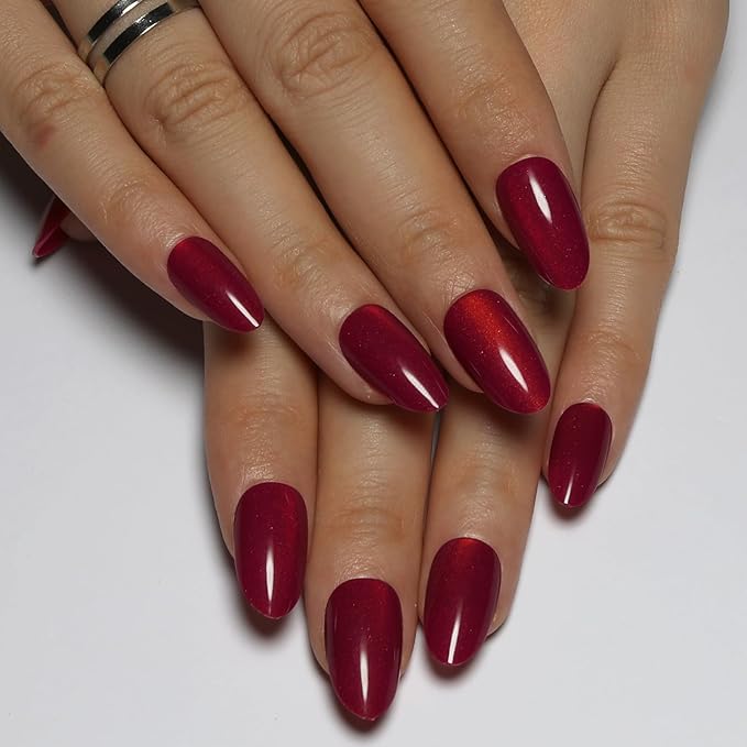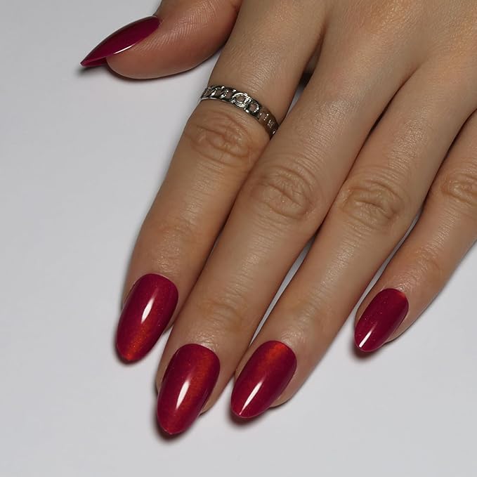 Pink Almond Press On Nails Cat Eye Short Press on Nails with Glue for Women Ashionable Gel False Nails Reusable Acrylic False Nails Women's Glitter Nails Glue On Nails Kit, Pitaya Pink