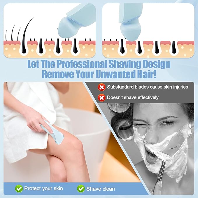 • 【Safe and Easy to Use】Say goodbye to razor burns and irritation. Our silk glide pro shaver uses hypoallergenic stainless steel blades to reduce the risk of shaving, making it easy to shave even sensitive skin. bikini razor, three-blade design, shave face, arms, legs, underarms and bikini area smoothly and effectively in minutes