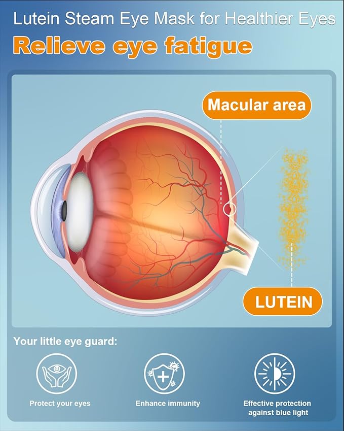 16 Packs Lutein Steam Eye Masks for Dry Eyes Self Heated Disposable Sleep Mask Soothing Headache Relief Dry Eye,Hot Warm Compress for Stress Relief Relief Eye Fatigue, Spa Items Travel Essentials