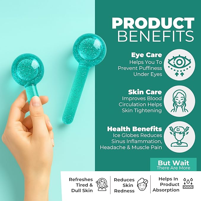- ๐๐๐ฃ๐ฎ๐ฏ๐๐ง๐๐ญ๐ข๐จ๐ง & ๐๐ง๐ญ๐ข-๐๐ ๐ข๐ง๐ : Experience the refreshing and invigorating effects of Castal Blue ice globes for facials in teal color. These ice balls for face help to tighten and firm your skin, giving you a youthful glow. With consistent use of facial globes, they can visibly soften fine lines and smooth out early signs of aging for a fresher, firmer appearance